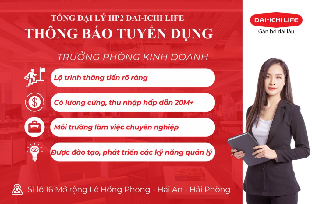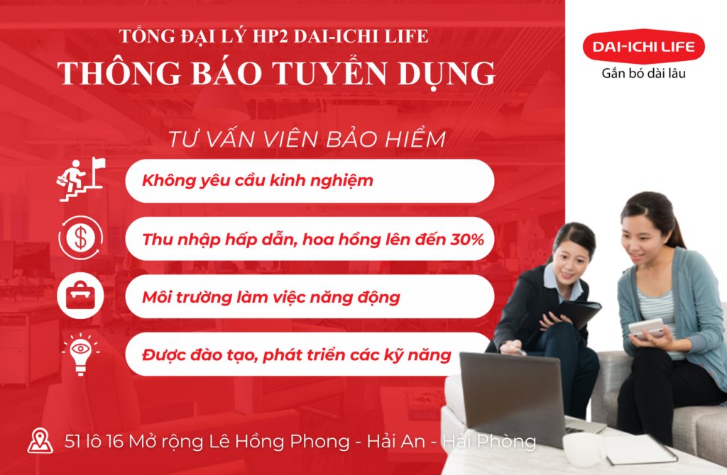 TUYỂN DỤNG TƯ VẤN VIÊN BẢO HIỂM Vị trí: Nhân viên phòng kinh doanh bảo hiểm nhân thọ Số lượng: 05 Địa điểm làm việc: Số 51 lô 16 Mở rộng Lê Hồng Phong – Hải An – Hải Phòng 1. Mô tả công việc: – Tư vấn, giới thiệu sản phẩm/dịch vụ của công […]